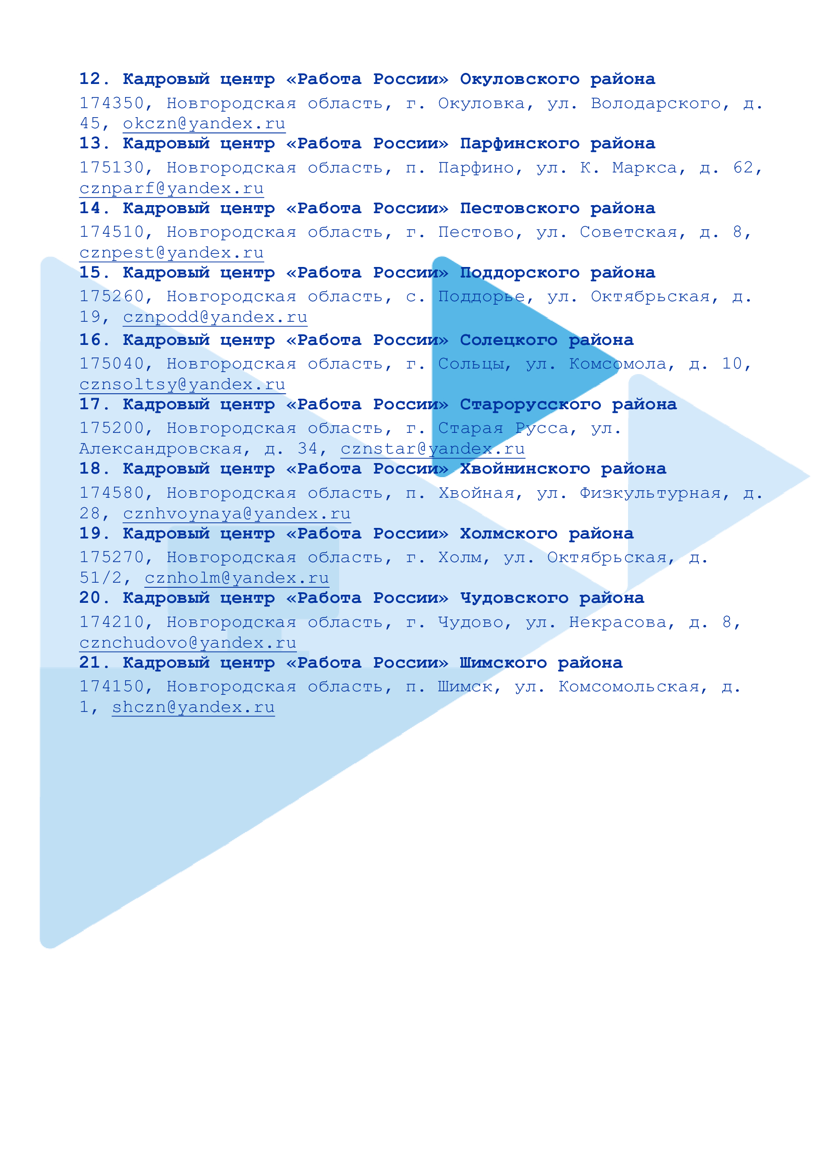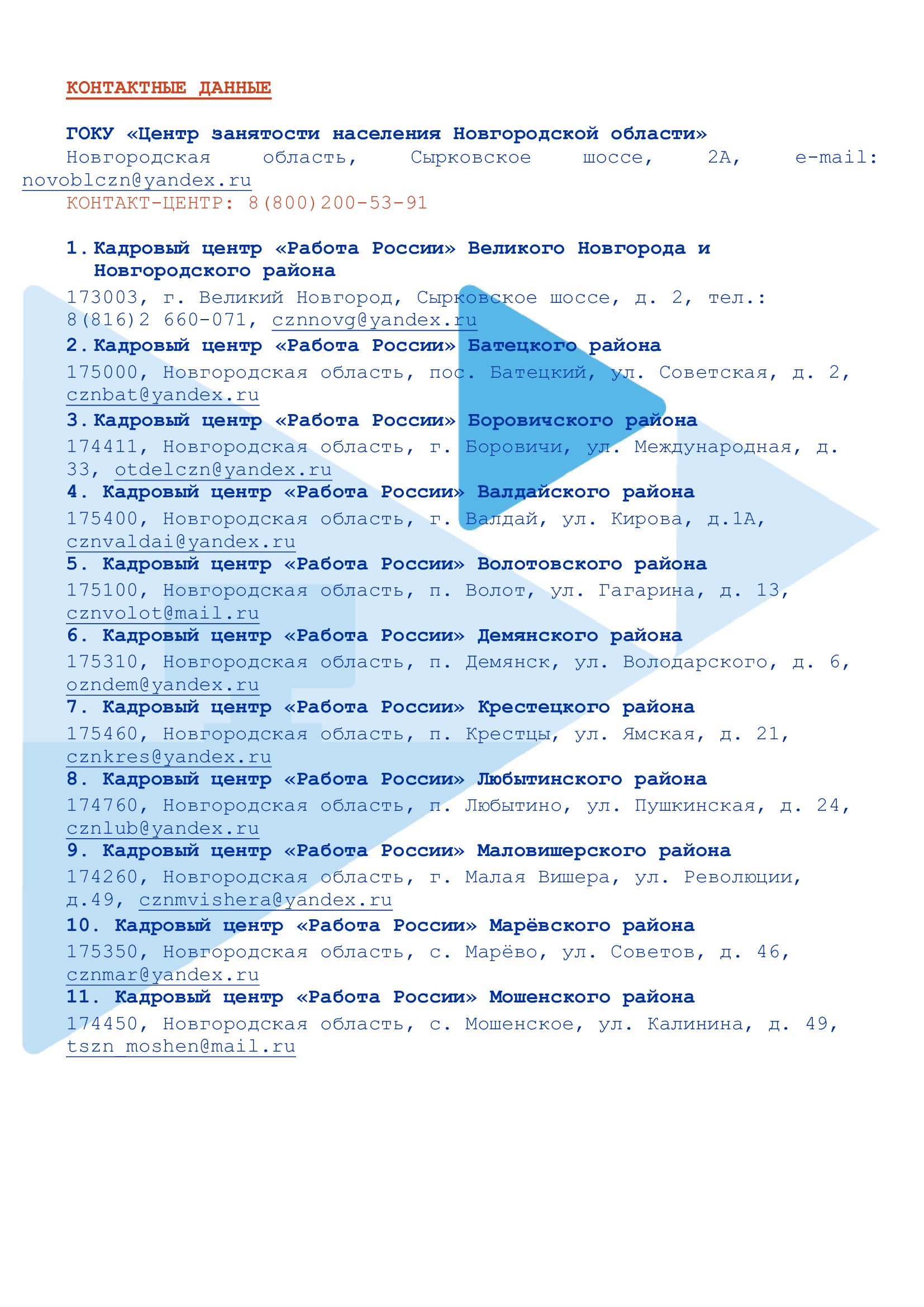 Сведения о местах нахождения органов государственной службы занятости населения Новгородской области